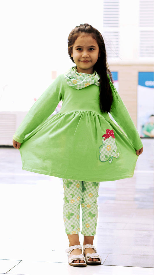 Girls St Patrick Shamrock Scarf Outfit