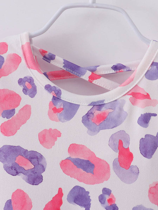 Spring Kids Clothes Pink Purple Leopard Girl Twirl Dress